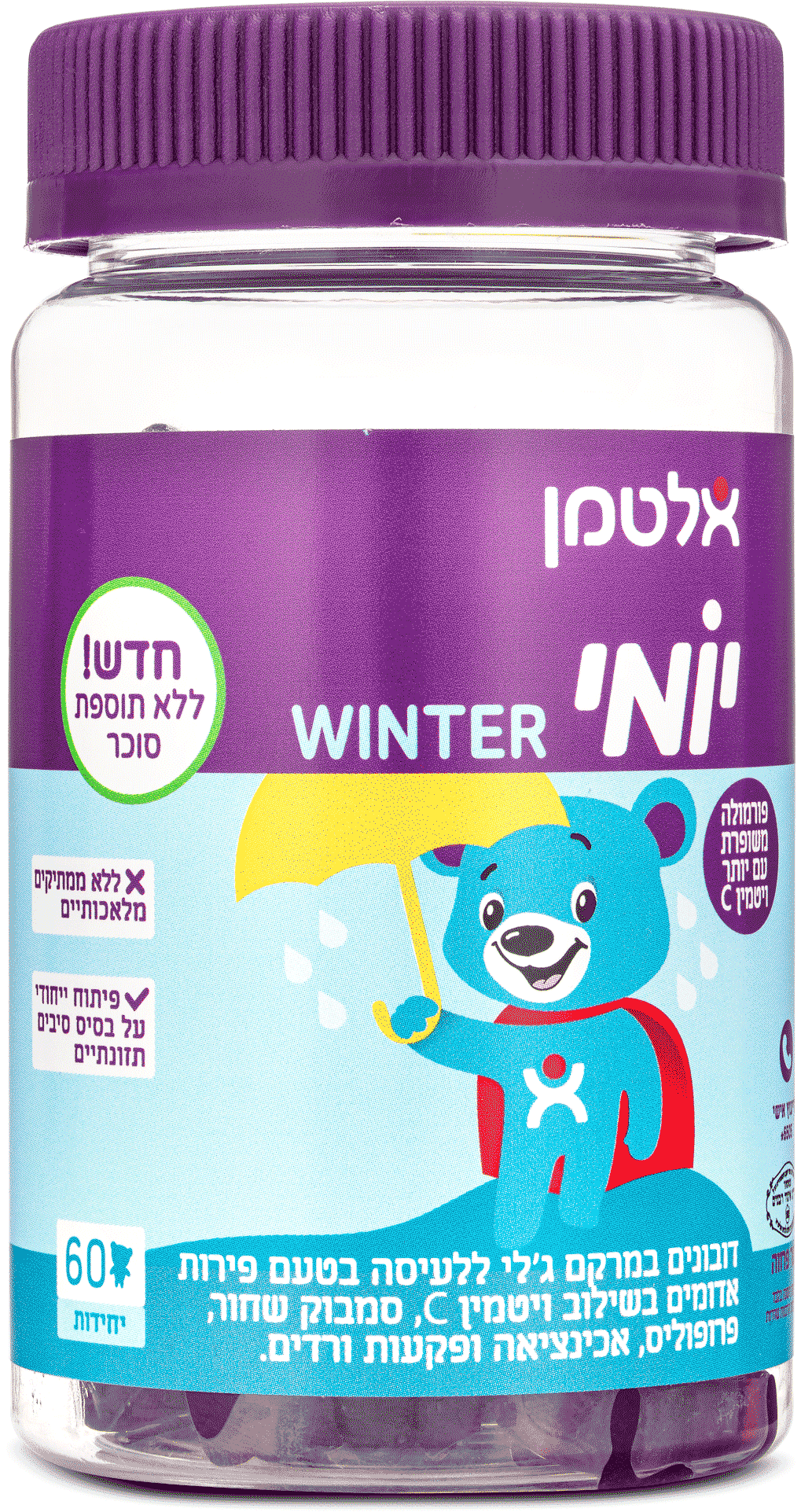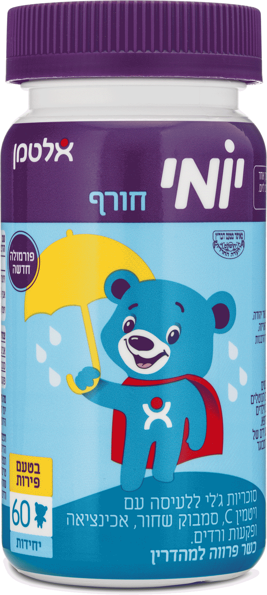 דובונים במרקם ג'לי ללעיסה בטעם פירות אדומים בשילוב ויטמין C, סמבוק שחור, פרופוליס, אכינציאה ופקעות ורדים.