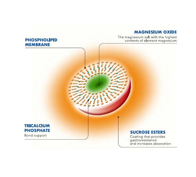 הטכנולוגיה כוללת שימוש במבנים כדוריים קטנים הנקראים ליפוזומים (מבנה שומני) העטופים בשכבה חיצונית נוספת שנקראת סוכרוז-אסטר, לקבלת מבנה סופי שנקרא סוכרוזום. למעשה, רכיב התזונה (במקרה שלנו מינרל המגנזיום) עטוף בשכבה כפולה של פוספוליפידים. שכבת הפוספוליפידים מחקה את המבנה הטבעי של קרומי התא וגם היא עטופה בשכבה נוספת, חיצונית שמטרתה לייצב את הקומפלקס כדי לשפר ספיגה ולהפחית תופעות לוואי במערכת העיכול.