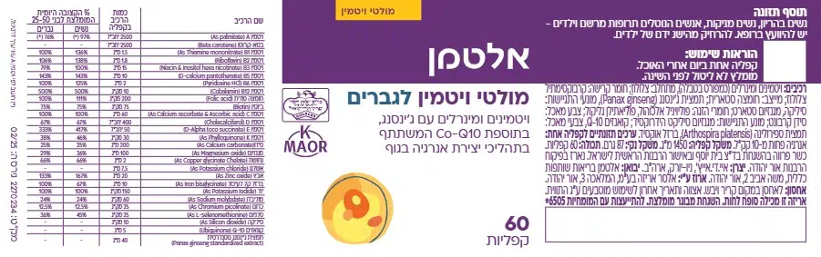 מולטי ויטמין עם פורמולה שפותחה במיוחד עבור גברים, בתוספת קו אנזים Q-10 וג'ינסנג. להשלמה תזונתית המסייעת בשמירה על חיוניות, בריאות ואנרגיה!
