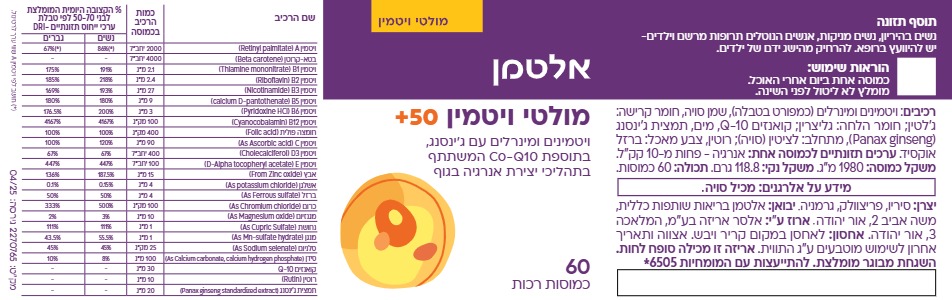 מולטי ויטמין ייעודי המותאם במיוחד לצרכים הגופניים הדרושים לנשים ולגברים בגילאי 50+ בתוספת קו אנזים Q-10 וג'ינסנג. להשלמה תזונתית המסייעת בשמירה על חיוניות, בריאות ואנרגיה!