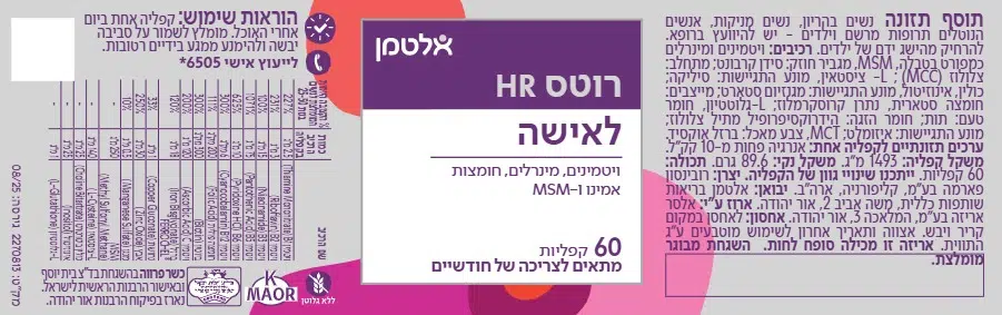 מחקרים מצביעים על חשיבותם של המינרלים אבץ וברזל לבריאות שורש השערה. תוסף התזונה רוטס HR מכיל מינרלים אלה נוסף לרכיבים msm וכן L-ציסטאין. רכיבים אלו מכילים גופרית – מינרל חשוב לגמישות שורש השערה ולחוזק שלה. רוטס HR לאישה מכיל פורמולה ייעודית לנשים המכילה רכיבי תזונה לשורש השערה.