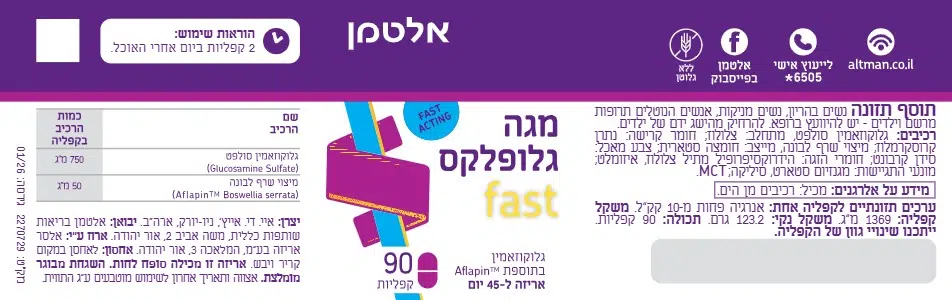| מיצוי שרף לבונה (Aflapin(TM) Boswellia serrata) | 50 מ"ג |