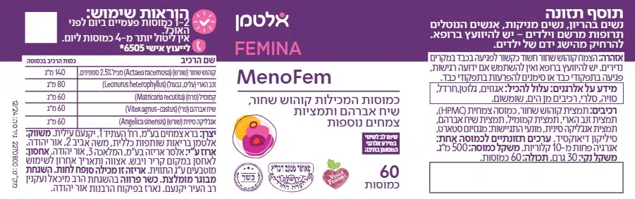 כמוסות המכילות שילוב של קוהוש שחור, שיח אברהם וצמחים נוספים, לתמיכה בשלב אמצע החיים