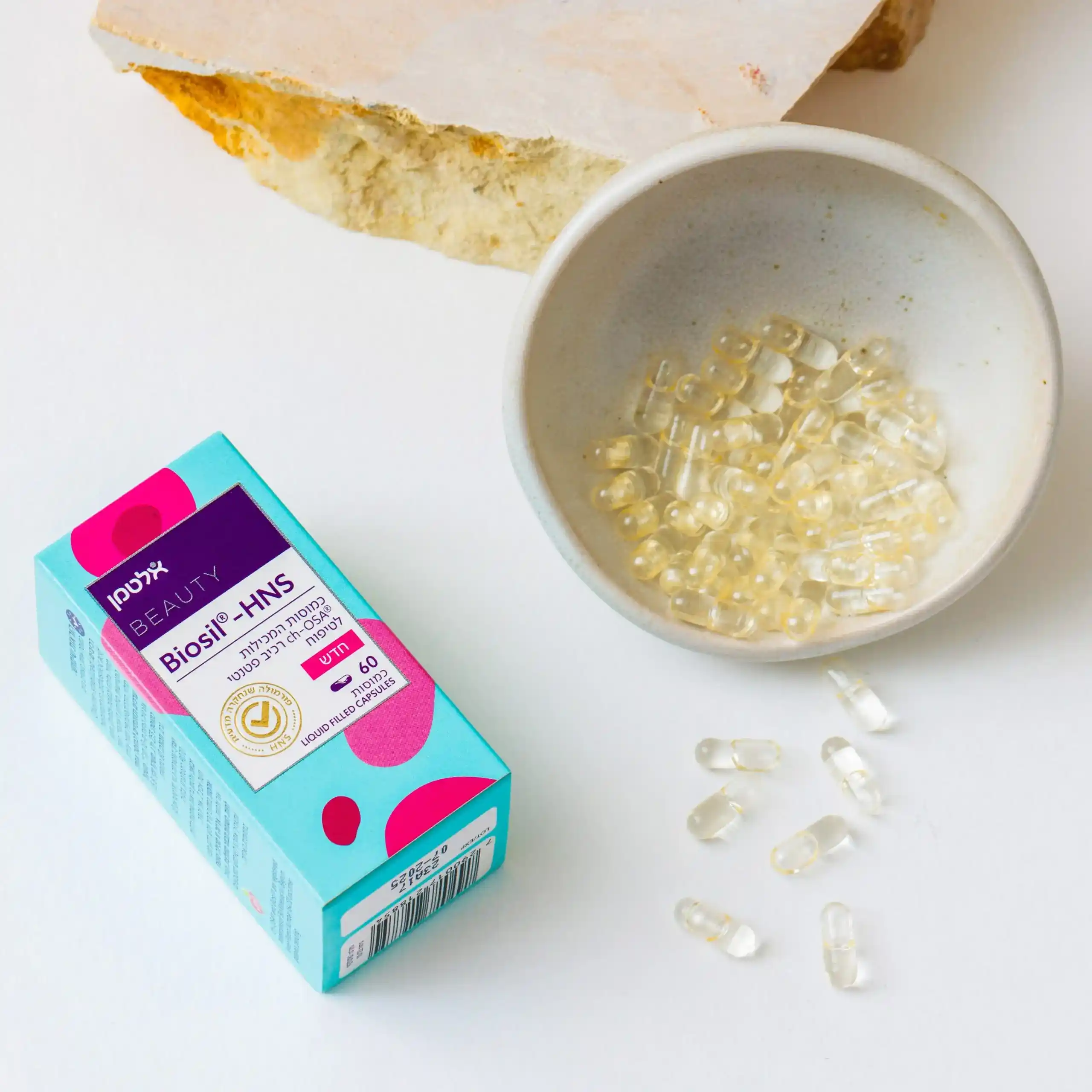 כמוסות המכילות ®ch-OSA רכיב פטנטי לטיפוח לעידוד ייצור חלבוני היופי: קולגן, אלסטין וקרטין ולפעילות יופי רחבה – HNS.