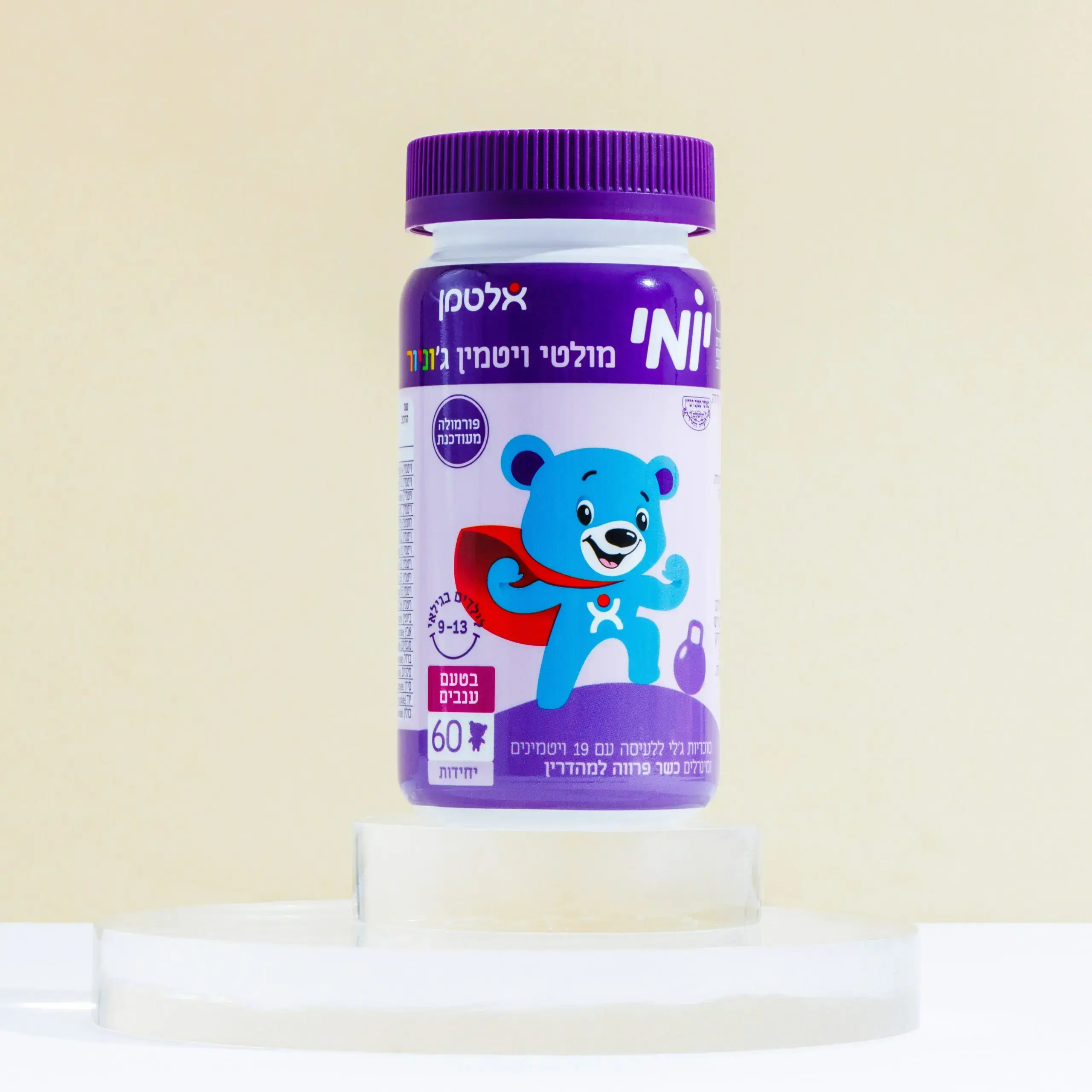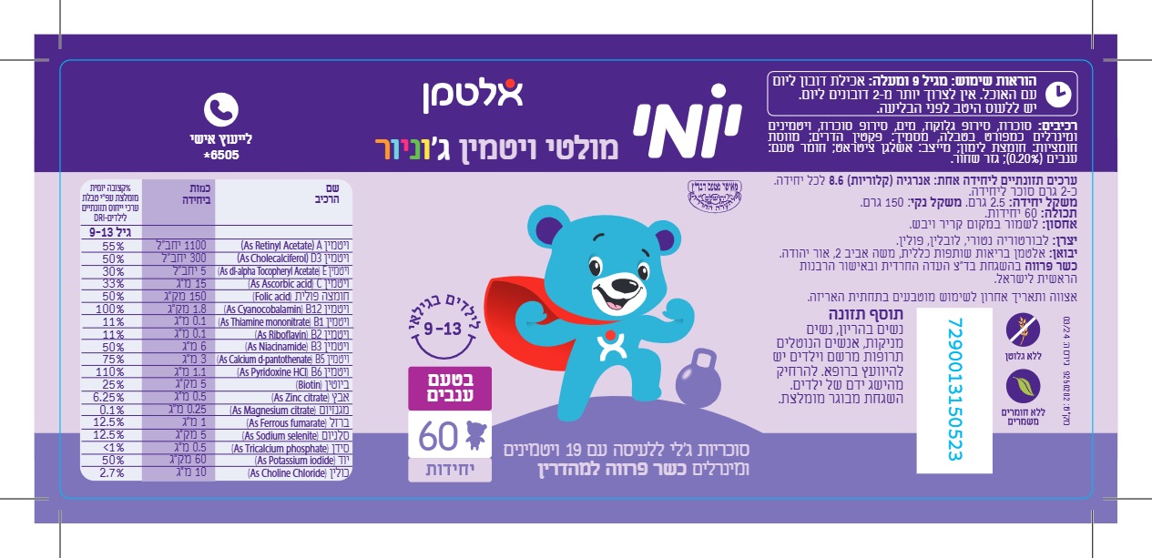 יומי היא סדרת תוספי תזונה שפותחה במיוחד עבור ילדים בגילאים שונים ולמצבי חיים יומיים שוניםסוכריות ג'לי. עם 19 ויטמינים ומינרלים לילדים בגילאי 9-13 בטעם ענבים ללא חומרים משמרים וללא גלוטן.