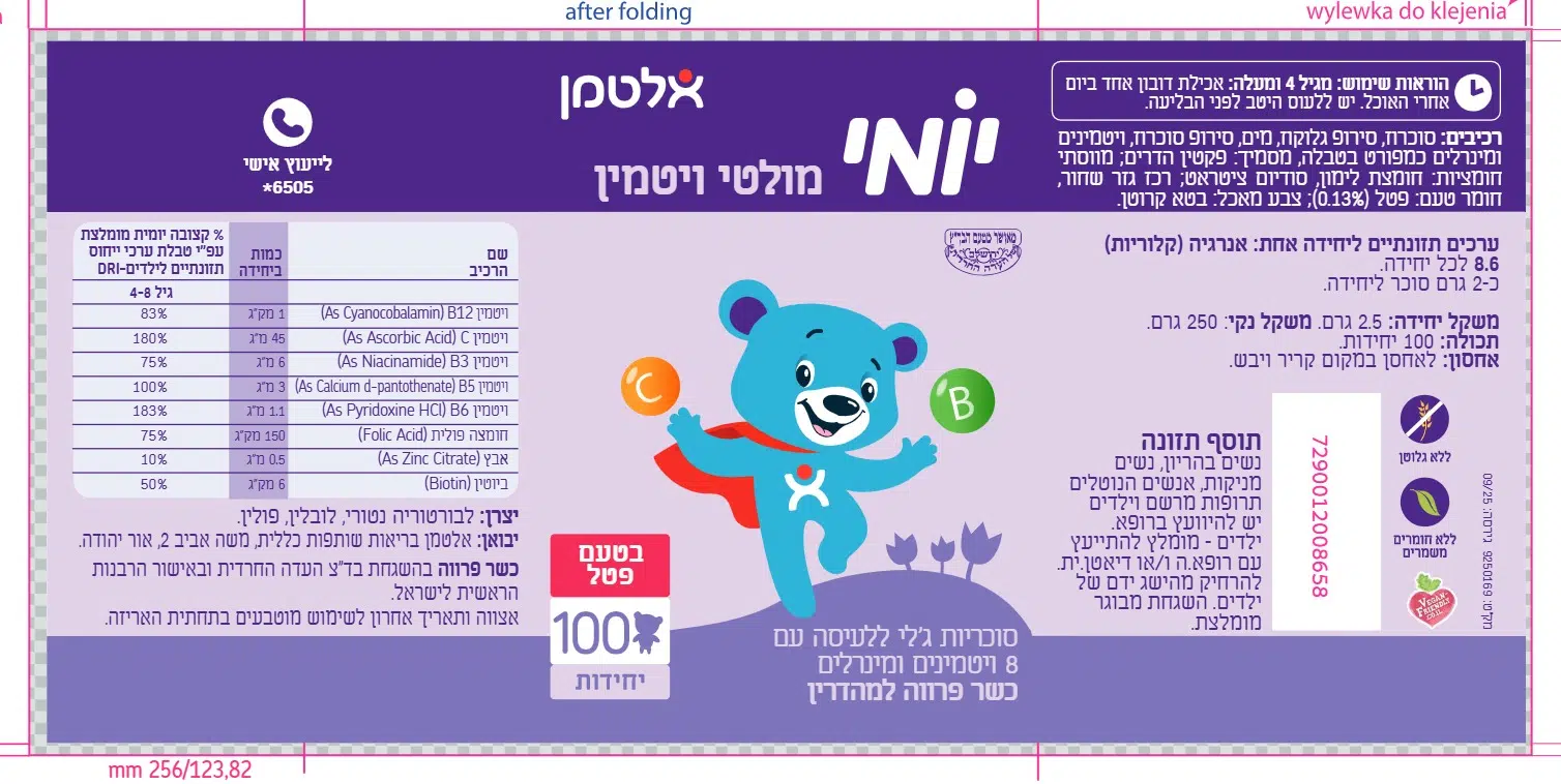 יומי היא סדרת תוספי תזונה שפותחה במיוחד עבור ילדים בגילאים שונים ולמצבי חיים יומיים שונים סוכריות ג'לי עם 8 ויטמינים ומינרלים בטעם ענבים ללא חומרים משמרים וללא גלוטן טבעוני.