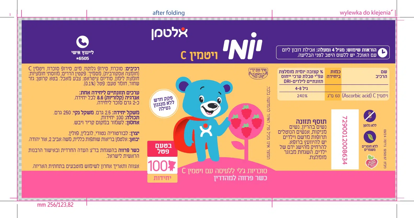 יומי היא סדרת תוספי תזונה שפותחה עבור ילדים בגילאים שונים ולמצבי חיים יומיים שונים. סוכריות ג'לי עם ויטמין C בטעם פטל ללא גלוטן וללא חומרים משמרים. טבעוני.