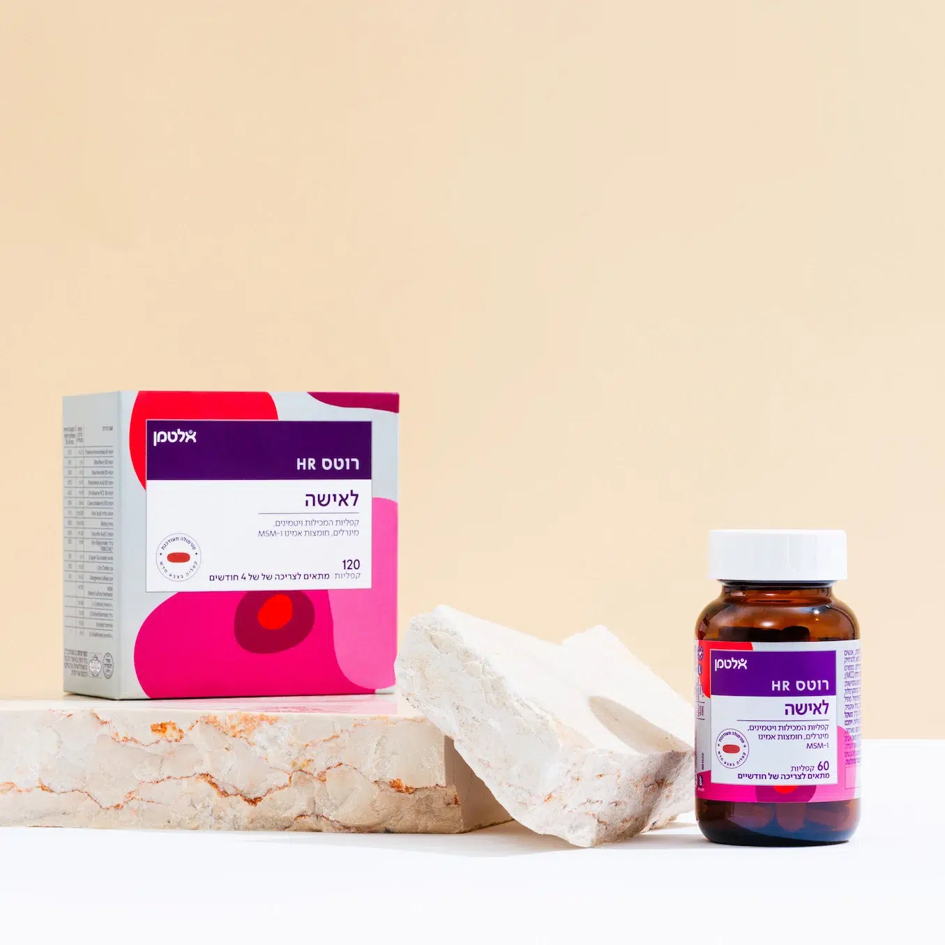 רוטס HR לאישה מכיל פורמולה ייעודית לנשים המכילה רכיבי תזונה לשורש השערה.