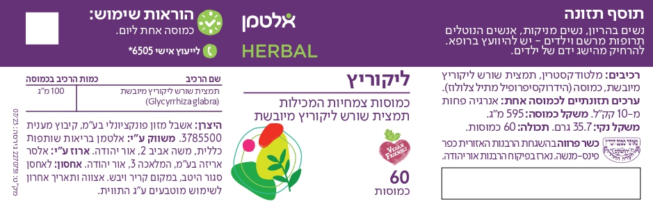 | תמצית שורש ליקורית מיובשת (Glycyrrhiza glabra) | 100 מ"ג |