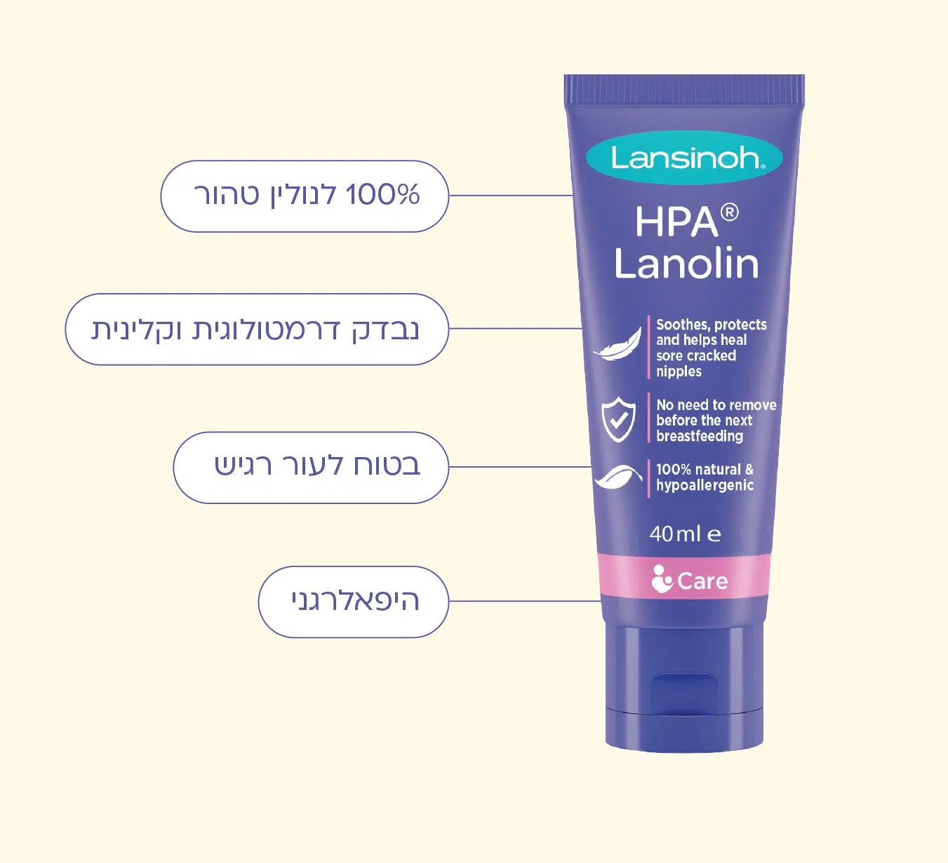 משחת לנסינו Lansinoh® HPA® Lanolin פותחה במיוחד עבור אמהות מניקות.