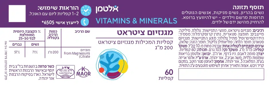 מגנזיום מסוג ציטראט לספיגה משופרת.