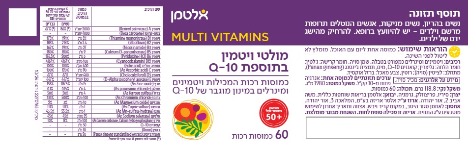 מולטי ויטמין ייעודי המותאם במיוחד לצרכים הגופניים הדרושים לנשים ולגברים בגילאי 50+ בתוספת קו אנזים Q-10 וג'ינסנג. להשלמה תזונתית המסייעת בשמירה על חיוניות, בריאות ואנרגיה!