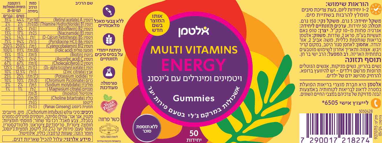 שילוב ויטמינים ומינרלים עם ג'ינסנג. גם ויטמינים, וגם טעימים! גאמיס ללעיסה בטעם פירות יער המכיל שילוב ויטמינים ומינרלים עם ג'ינסנג, פיתוח ייחודי על בסיס סיבים תזונתיים ללא תוספת סוכר וללא צבעי מאכל מלאכותיים