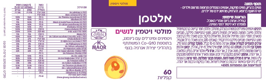 מולטי ויטמין עם פורמולה שפותחה במיוחד עבור נשים, מכיל שילוב עשיר וייחודי של ויטמינים ומינרלים להשלמה תזונתית מקיפה, בתוספת ג׳ינסנג וקואנזים Q10 המשתתף בתהליכי יצירת אנרגיה בגוף