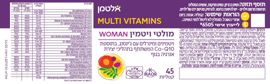 מולטי ויטמין עם פורמולה שפותחה במיוחד עבור נשים בתוספת קו אנזים Q-10 וג'ינסנג. להשלמה תזונתית המסייעת בשמירה על חיוניות, בריאות ואנרגיה!