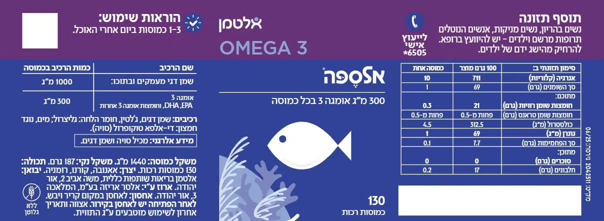| אומגה 3 (EPA, DHA וחומצות אומגה 3 אחרות) | 300 מ"ג |