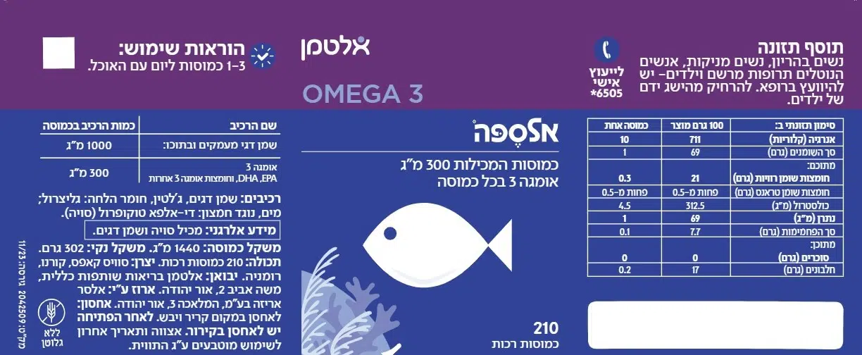 | אומגה 3 EPA, DHA, וחומצות אומגה 3 אחרות | 300 מ"ג |
