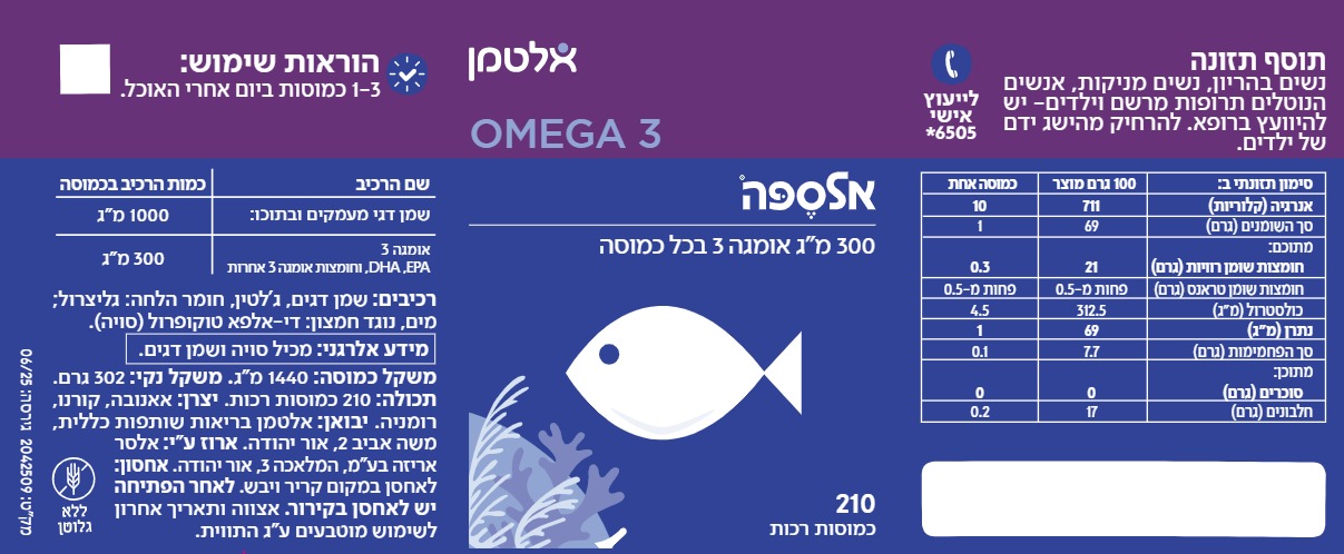 300 מ"ג אומגה 3 לצריכה יומיומית. אומגה 3 היא קבוצה של חומצות שומן חיוניות אשר גופינו לא יודע לייצר ולכן חייבים לקבל אותן מהתזונה שלנו. חומצות שומן אלה נחקרו במצבי בריאות שונים, יש להן תפקידים רבים במערכות הגוף השונות ובשלבי החיים השונים החל משלב העוברות ועד לזקנה.