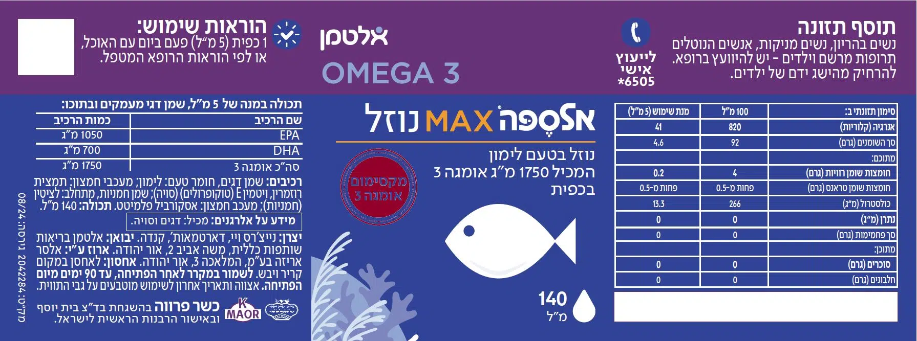 | סה"כ אומגה 3 | 1750 מ"ג |