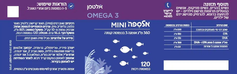 | סה"כ אומגה 3 מסוג DHA ו-EPA | 300 מ"ג |