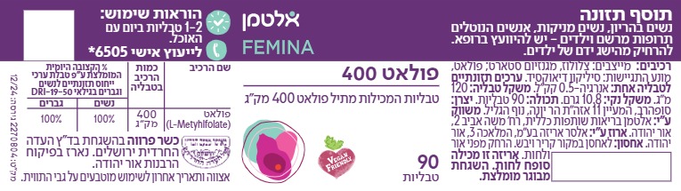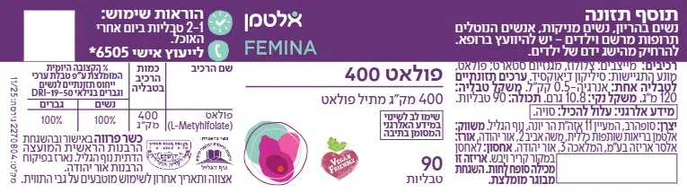 | פולאט (L-Methylfolate) | 400 מק"ג |