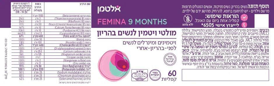 מולטי ויטמין המכיל ברזל קל לעיכול, חומצה פולית, ויטמין D, יוד ועוד.