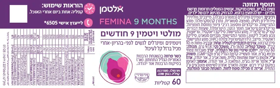 ההרכב מתאים גם כהכנה, וגם לשימוש במהלך ולאחר ההריון. הפורמולה נבחרה בקפידה על מנת לסייע לך להשלים את התזונה היומית במהלך 9 החודשים