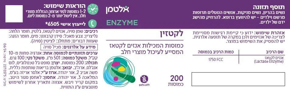 | אנזים לקטאז (Lactase Enzyme) | 1750 FCC |