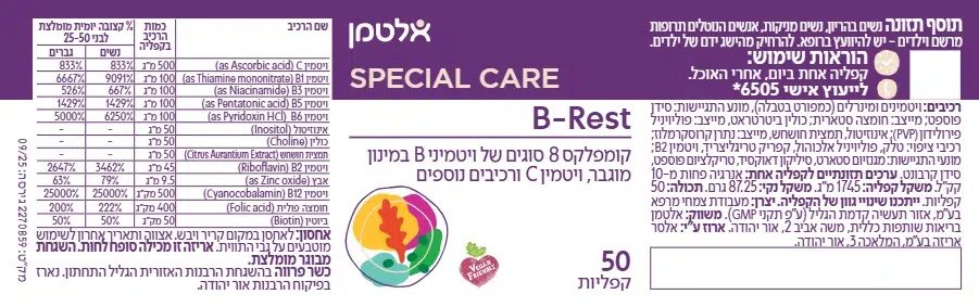 נשים בהריון, נשים מניקות, אנשים הנוטלים תרופות מרשם וילדים – יש להיוועץ ברופא. הרחק מהישג ידם של ילדים. מוצריה של אלטמן הם אינם תרופה ואינם מיועדים לרפא מחלה כלשהי. ההסתמכות על המידע המפורט להלן היא על אחריות הקורא בלבד ומומלץ להתייעץ עם רופא מוסמך טרם רכישת מוצר כלשהו. הנתונים המדויקים מופיעים על גבי המוצר, אין להסתמך על הפירוט המופיע באתר, יתכנו טעויות או אי התאמות, יש לקרוא את המופיע על גבי אריזת המוצר לפני השימוש. התמונות והתאריכים המופיעים הינם להמחשה בלבד ואין להסתמך עליהם.