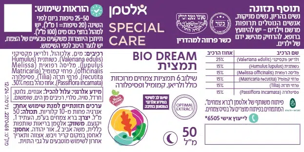 25-50 טיפות (20 טיפות= 1 מ"ל) ביום לפני השינה.