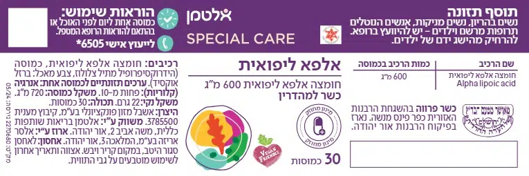 | חומצה אלפא ליפואית | 600 מ"ג |