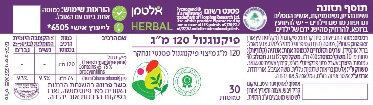 | פיקנוגנול (French maritime pine, contains 65%-75% procyanidis) | 120 מ"ג |