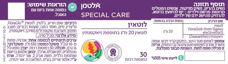| לוטאין FloraGlo® (from Marigold extract) | 20 מ"ג |