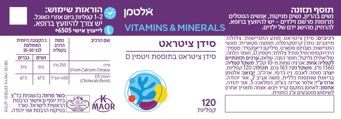 | סידן (From Calcium Citrate) | 250 מ"ג |