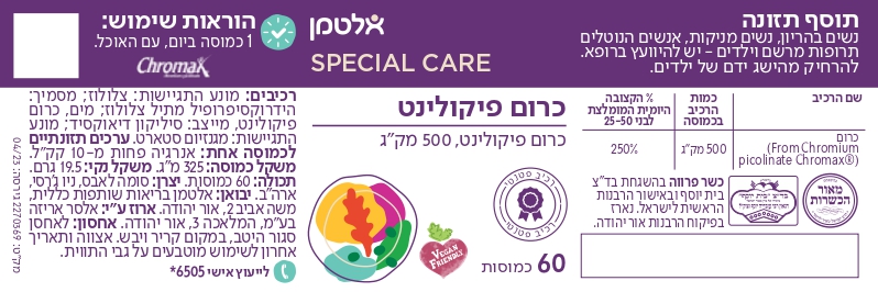 | כרום (Chromium picolinate Chromax) | 500 מק"ג |