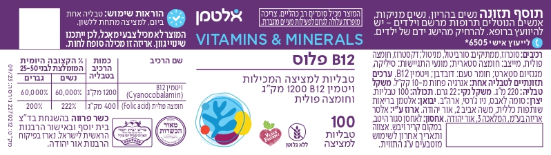 | ויטמין B12 (Cyanocobalamin) | 1200 מק"ג |