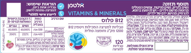 | ויטמין B12 (Cyanocobalamin) | 1200 מק"ג |