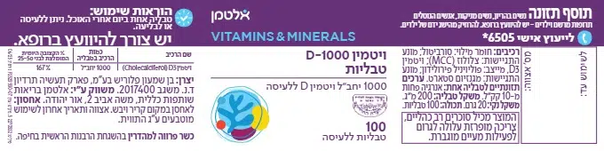 | ויטמין D3 (Cholecalciferol) | 1000 יחב"ל |