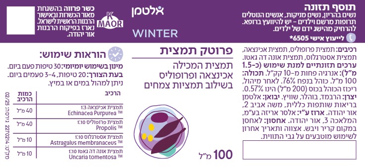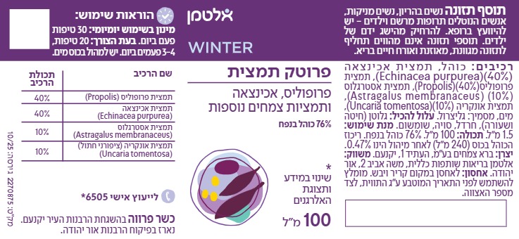 נשים בהריון, נשים מניקות, אנשים הנוטלים תרופות מרשם וילדים – יש להיוועץ ברופא. הרחק מהישג ידם של ילדים. מוצריה של אלטמן הם אינם תרופה ואינם מיועדים לרפא מחלה כלשהי. ההסתמכות על המידע המפורט להלן היא על אחריות הקורא בלבד ומומלץ להתייעץ עם רופא מוסמך טרם רכישת מוצר כלשהו. הנתונים המדויקים מופיעים על גבי המוצר, אין להסתמך על הפירוט המופיע באתר, יתכנו טעויות או אי התאמות, יש לקרוא את המופיע על גבי אריזת המוצר לפני השימוש. התמונות והתאריכים המופיעים הינם להמחשה בלבד ואין להסתמך עליהם.