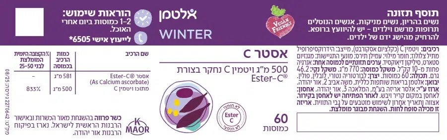 | אסטר Ester-C (as Calcium Ascorbate) | 581 מ"ג |