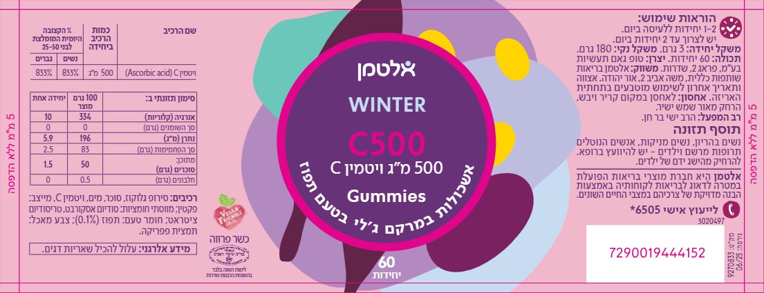 תוסף תזונה המכיל 500 מ"ג ויטמין C בצורת Gummies , טעים במיוחד ונוח לנטילה!
