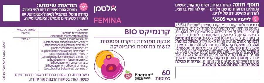 שילוב ייחודי של אבקת חמוציות נחקרת ופטנטית Pacran לנשים בתוספת פרוביוטיקה