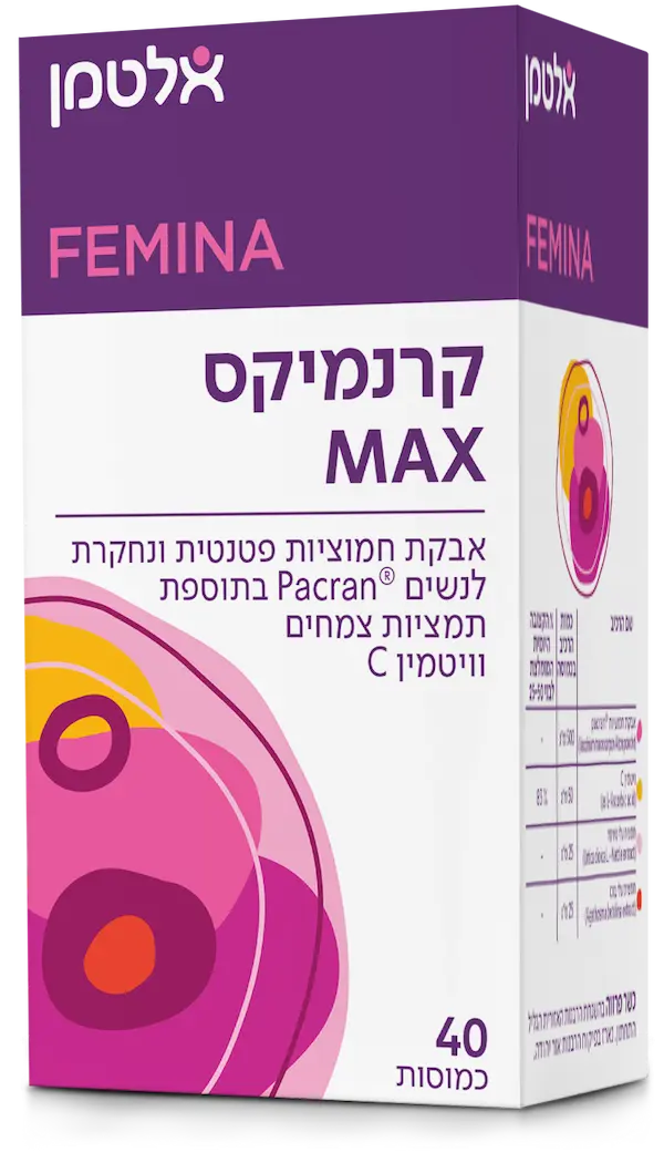 תמצית החמוציות בקרנמיקס מבוססת על הרכיב הנחקר Cran-Max®. עוצמה כפולה בכמוסה אחת